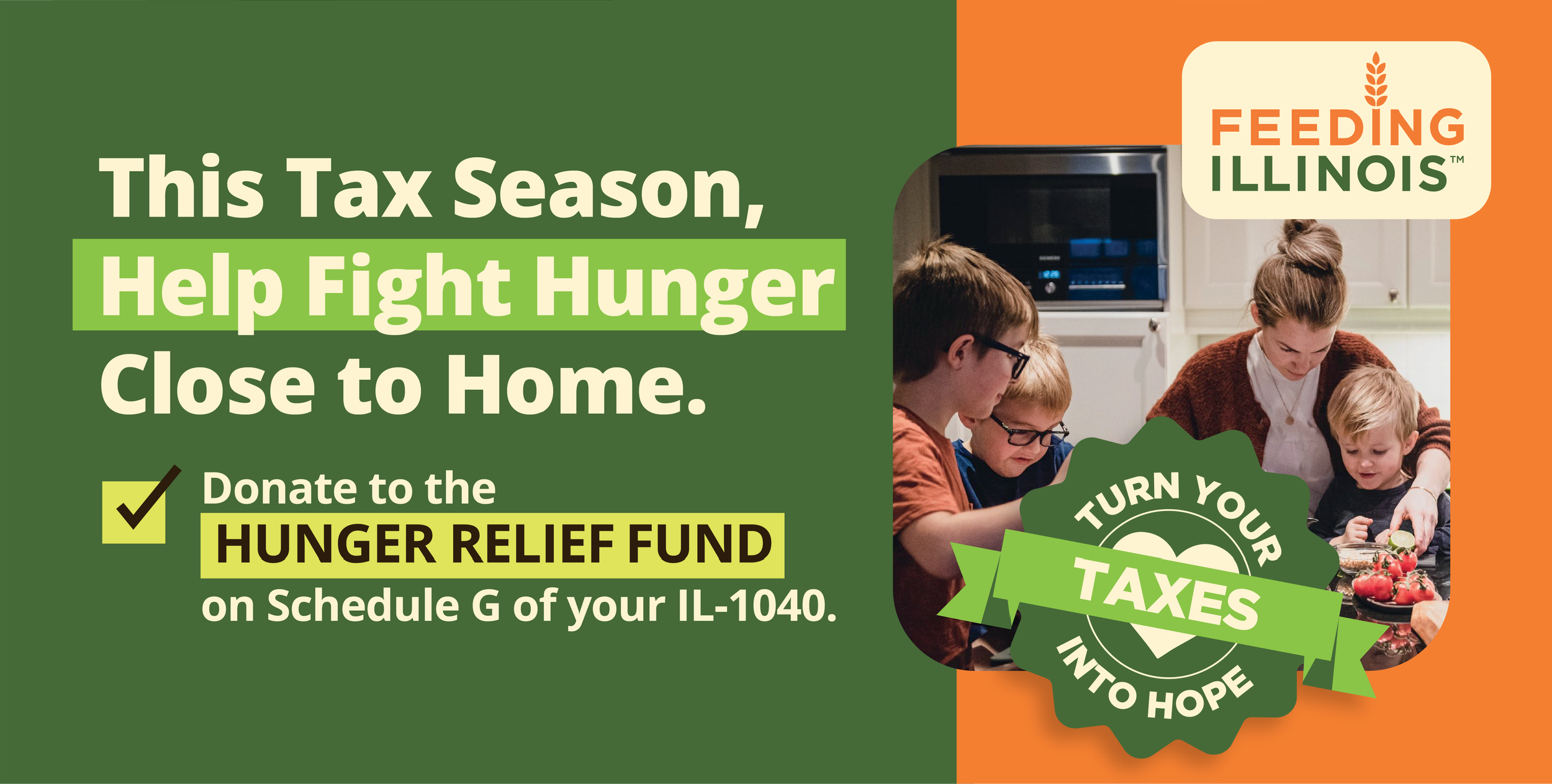 Donate to the Hunger Relief Fund. Use schedule G, Form IL-1040 on your 2025 tax return.